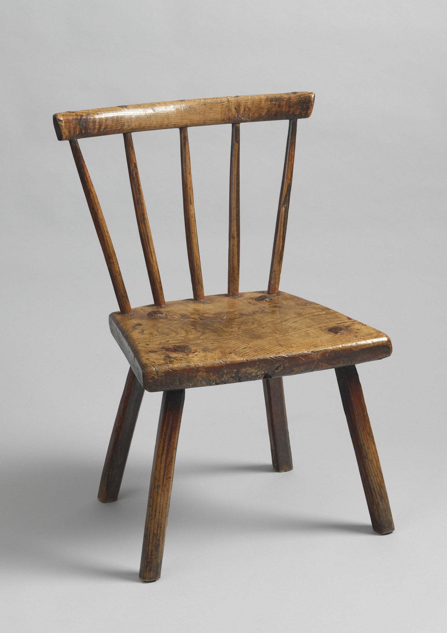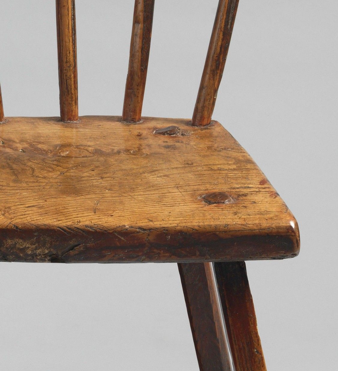 Of classic Windsor construction with the backrest uprights and four legs socketed into the single plank seat, this small working Backstool was made to last. With strong vertical lines it has an appealing graphic quality which is enhanced by the light honey colour and wonderfully textural surface. In strong functional and untouched original condition.