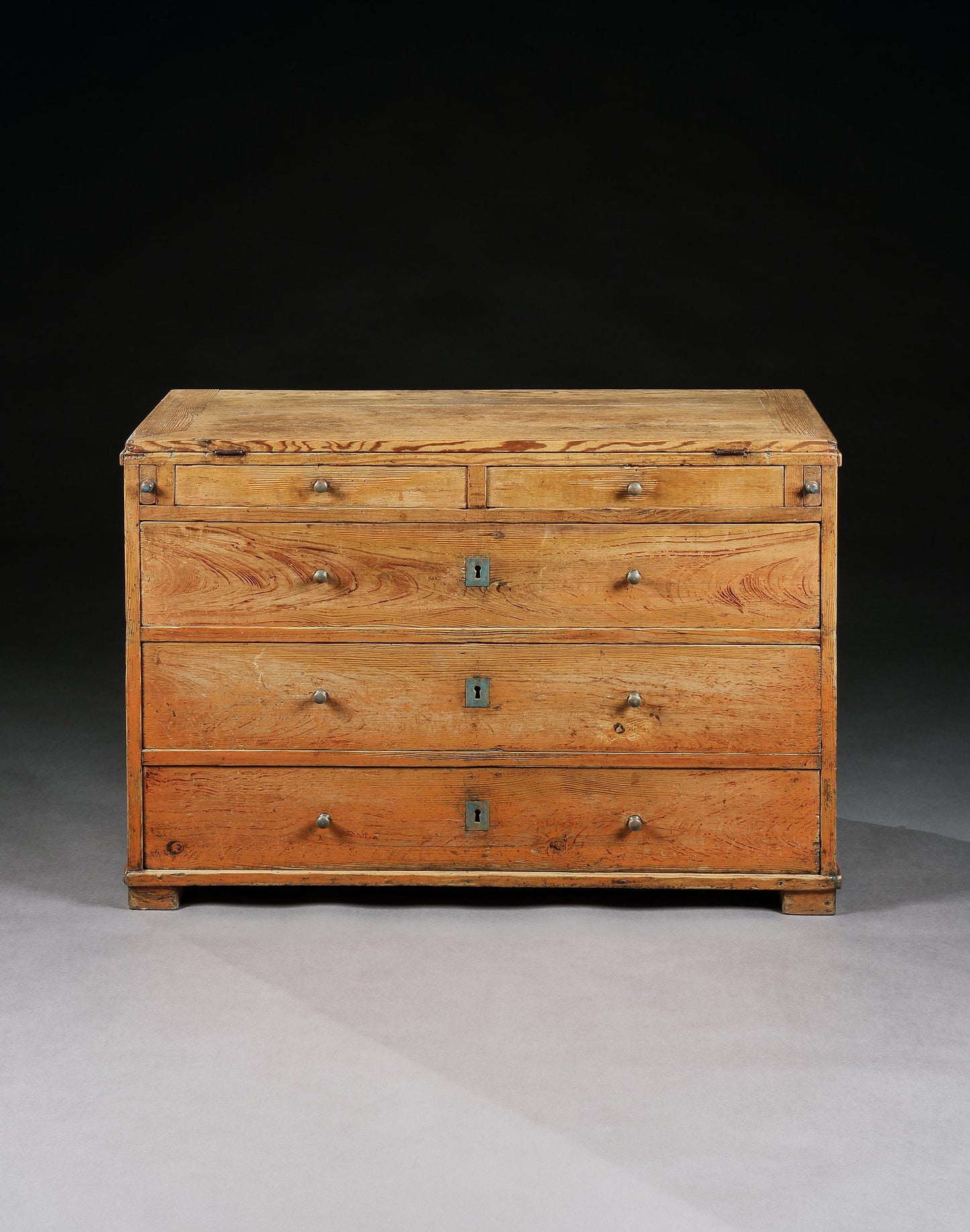 The Hinged Fold-Out Top Above Two Short and Three Long Drawers