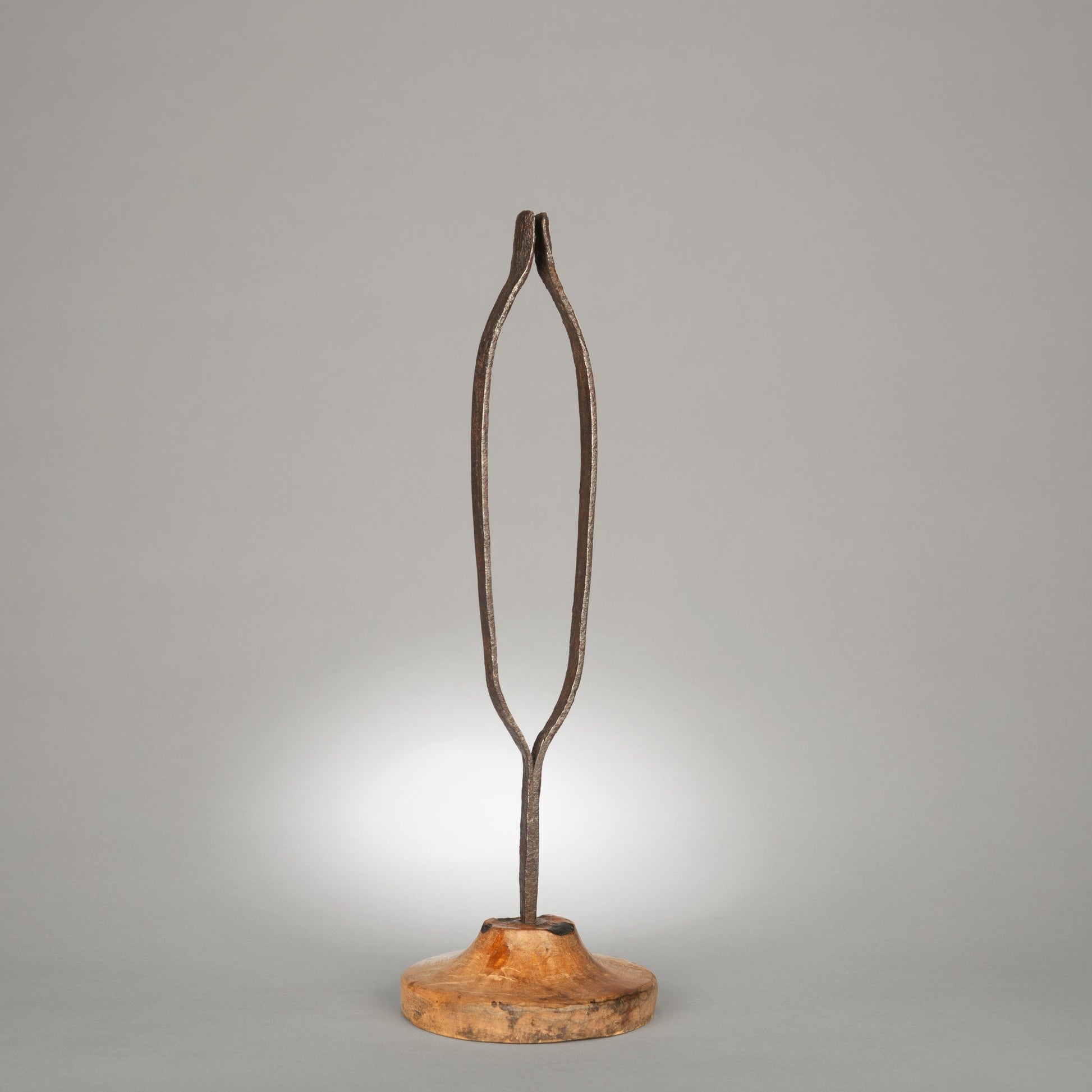 Of Tall Slender Curved Form on Original Circular Base Hand Wrought Metal and Solid Birchwood Swedish, c.1820