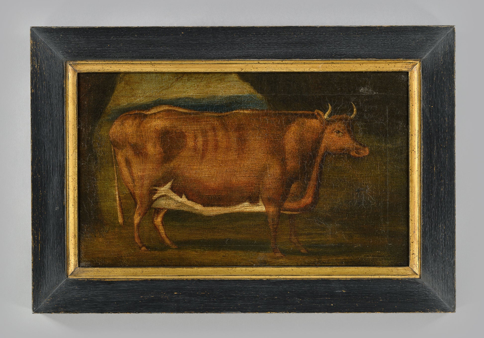 Primitive Livestock Portrait of a Hereford BullDepicted Standing in Profile in a Stylised LandscapeOils on CanvasEnglish, c.1840