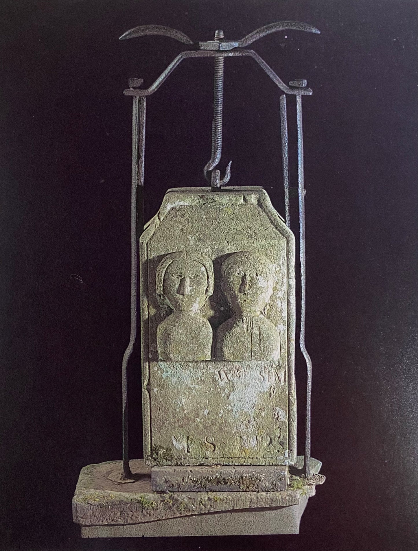 Figure Carved Cheese Press Stone and Wrought Iron Scottish, c.1800