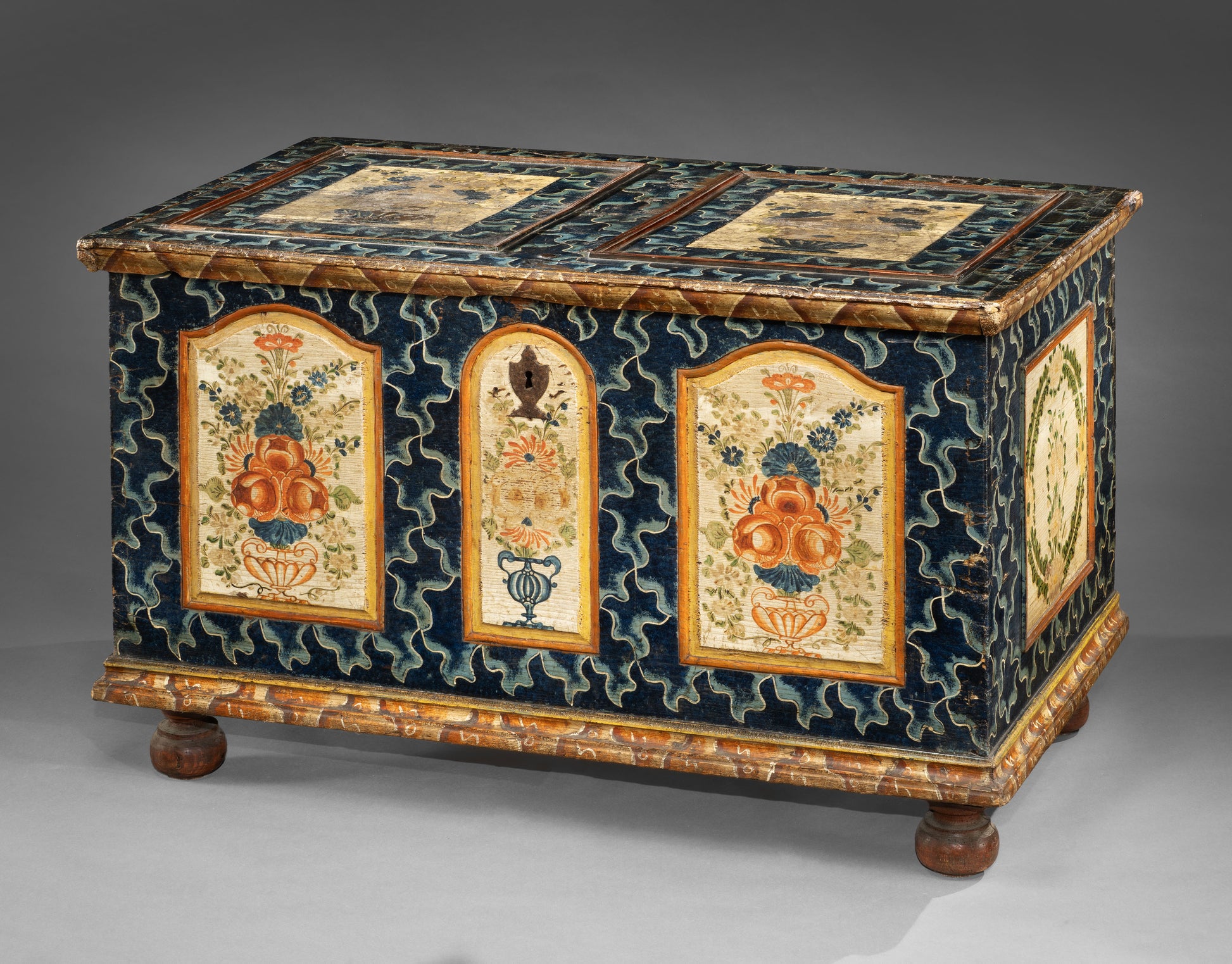 With Traditional "Jigsaw" Field and Floral Motifs to the Panels